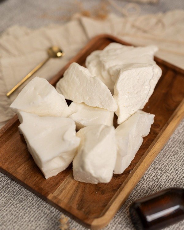 Nuestra cera de soja extra premium se caracteriza por su color blanco natural, textura cremosa y excelente desempeño tanto en velas en recipiente como en moldes.